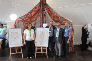 Vom 15. – 22. August war die Deutschsprachige Evangelische Gemeinde aus Kairo im Gasthaus Ökumene präsent und hat die Ausstellung „Zitate der Reformation in arabischer Kalligraphie“ mitgebracht. Mit von der Partie waren die früheren Kirchenvorsteherinnen Monika Heckmann, Freiburg, und Julia Wolbergs, Leipzig, und eigens aus Kairo angereist der Kalligraph Ahmed Darwish und dazu aus Langen bei Frankfurt Dr. Tharwat Kades. Gemeinsam mit der Deutschen Ev. Gemeinde in Bangalore und der St. Johns Church aus New York, Manhatten, erfüllten wir mit über 20 Personen das kugelrunde Zelt mit Leben. Unser Projekt, das auf muslimisch-christlicher Dialogarbeit an Reformationstexten beruht, fand bei den anderen Gemeinden und bei den Gästen großes Interesse. Dass ein Dialog mit Muslimen so auf Augenhöhe geschehen könne, dass ein Moslem ein bekennender „Lutherfan“ sein könnte und dass die arabische Schrift nicht nur auf schwarzen Bannern Schrecken verbreiten, sondern wunderschön sein kann, das erlebten die Teilnehmer und Gäste bei uns. Bei Gesprächen zu einer Tasse frisch gekochtem Mokka saßen wir zusammen und sprachen über unseren Gemeindealltag, über unsere Gottesdienste und Erfahrungen. Alle, die wollten, konnten bei Ahmed Darwish lernen, ihren Namen auf Arabisch zu schreiben und fanden sich so hinein in die Schönheit dieser Schrift und Sprache. Und natürlich haben Ahmed Darwish und Tharwat Kades auf dem roten Sofa wieder einmal die freundschaftliche Art, ihren Dialog zu führen, unter Beweis gestellt. Die Plakate, Kalender und Karten fanden viele Interessenten und am Ende der Woche, die vergangen ist wie im Fluge, fiel uns der Abschied voneinander und von den anderen Gemeinden schwer. Denn dieses Gasthaus war nicht nur ein gastlicher Ort für Besucher, sondern zugleich ein bewegendes ökumenisches Zuhauses für uns Teilnehmer aus Ost, Süd und West.