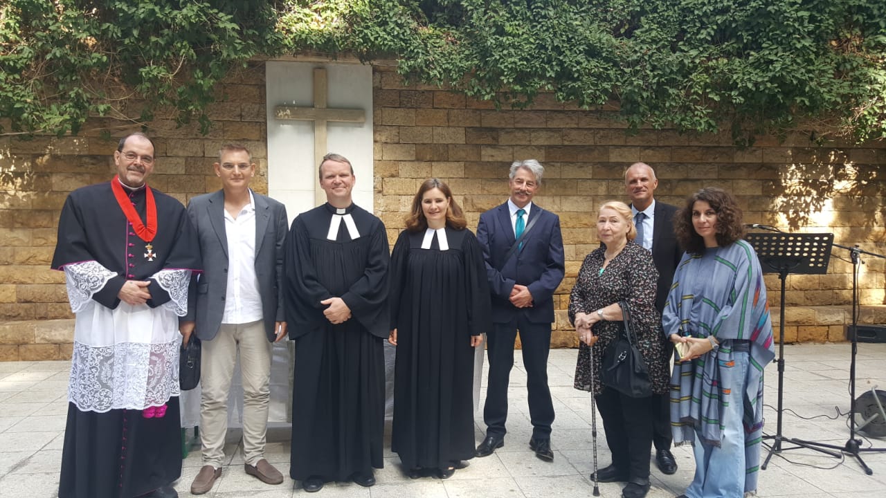 Ökumenisch hat eine kleine Gruppe auf dem eindrucksvollen Friedhof sich an die Verstorbenen, an gefallene Soldaten der beiden Weltkriege erinnert, aber auch nach vorne geblickt: Was wird aus dieser Welt werden? Wer bestimmt am Ende die Geschicke unserer Welt, die scheinbar von einer Katastrophe in die nächste taumelt? Ein Text aus der teils kryptischen Offenbarung des Johannes hat die Perspektive eröffnet, dass das Reich Gottes auf dem Weg in diese Welt ist. Mrsg. Joachim Schroedel war am Gottesdienst beteiligt wie Pfr. Michael Schlick von der frz.-protestantischen Gemeinde, und Matthias Fischer von der deutschen Botschaft überbrachte ein nachdenkliches Grußwort.
