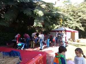 oder Tiergarten gemütlich gemacht, die Kinder konnten herumtollen und die Erwachsenen entspannen. Und nicht weit davon stand auch dieses Jahr unser Kirchenzelt. Immer zur vollen Stunde wurden Märchen und Weihnachtsgeschichten vorgelesen, mit von der Partie: Der Deutsche Botschafter Georg Luy und der Botschafter der Republik Österreich Georg Stillfried, Hanna Hartmann und René Meyer-Brede. Die Kinder hörten gebannt zu, stellten Fragen und sangen Weihnachtslieder.